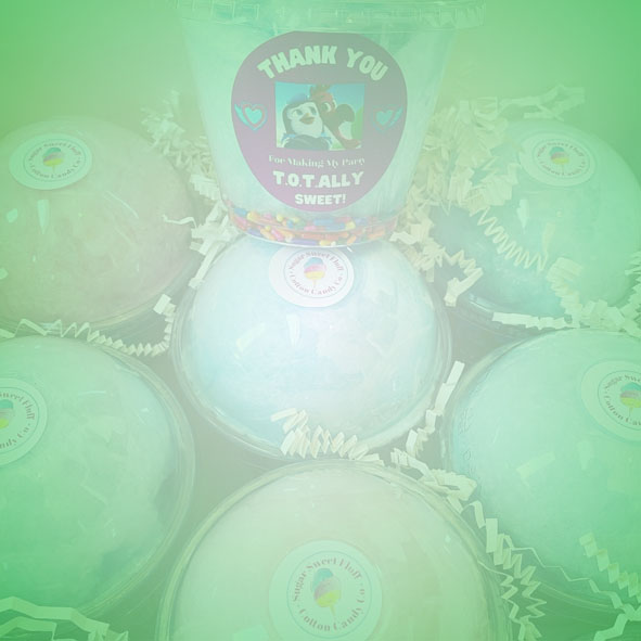 Our Corporate Gift Baskets are one of a kind and serve as the perfect thank you or welcome gift. Filled with selected sweet treats and your choice of cotton candy we work together to create the perfect gift basket.